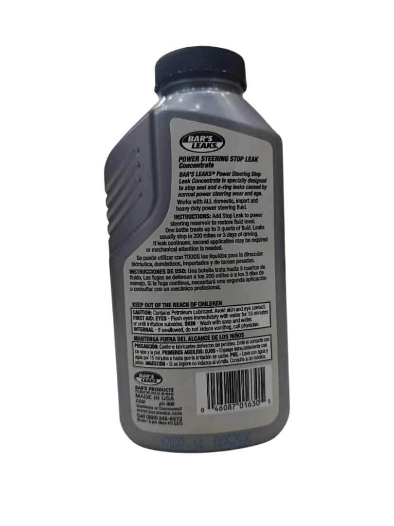 Add Bar’s leak stop leak to power steering reservoir fluid level. One bottle treats up to 3 quarts of fluid. Leaks usually stop in 200 miles or 3 days of driving. If leak continues, second appication may be required or mechanical attention may be required.